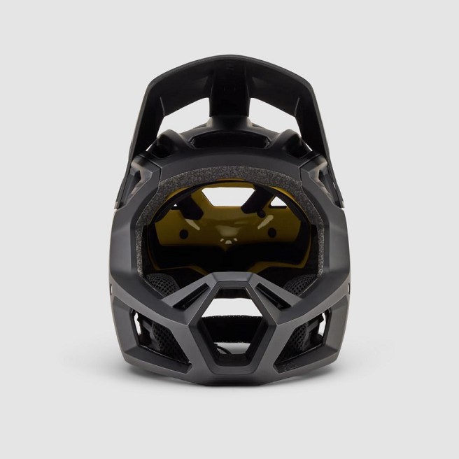 Fox Proframe Matte Black Helmet е ултралека full-face каска, създадена специално за ендуро, трейл и all-mountain каране. Тя е една от първите каски, които комбинират пълна защита на лицето с отлична вентилация, което я прави идеален избор за агресивно каране по технични пътеки, без да се жертва комфортът при изкачвания. Каската използва системата MIPS®, която намалява ротационните сили при удар и допринася за по-добра защита на мозъка при падане. В същото време леката конструкция и големият брой вентилационни отвори осигуряват отлична циркулация на въздуха дори при интензивно каране.