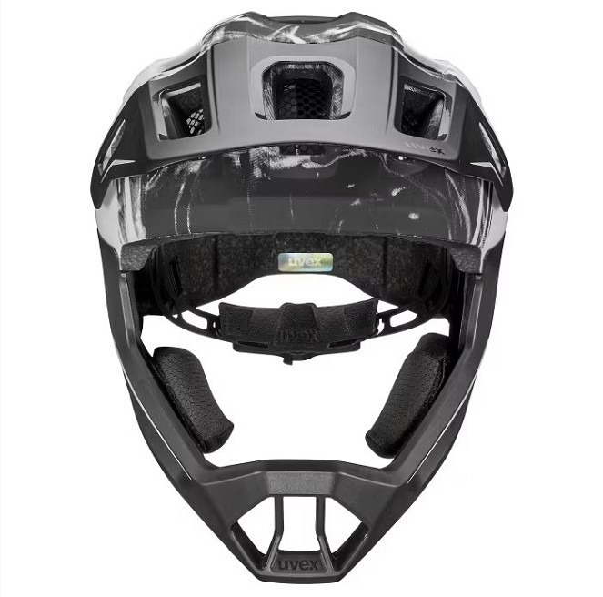 UVEX React Jr. Fullface е специално проектирана детска full-face каска, която предлага максимална защита за младите любители на планинското колоездене, pumptrack-овете, градските или екстремни трасета. Този модел съчетава висока степен на безопасност, удобно прилягане и спортно излъчване, за да осигури увереност и спокойствие както за децата, така и за родителите. Конструкцията с Inmould технология осигурява здрава и лека структура чрез неразривна връзка между удебелената EPS вътрешност и външния поликарбонатен корпус. Допълнително, отделящата се защита за брадичката увеличава нивото на безопасност при външни удари и прави каската подходяща за по-трудни терени.