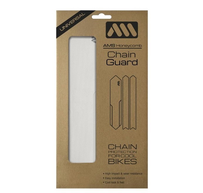 AMS CHAIN Guard е специално проектиран да предпазва задния триъгълник на велосипеда ви от удари, драскотини и триене на веригата. Изработен е от ексклузивен, супер лесен за монтаж, самозалепващ се полимер.