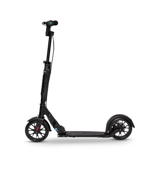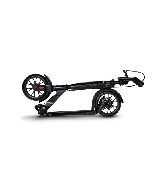 Висок клас, максимален комфорт и сигурност - Micro Metropolitan Deluxe Black е създадена за модерното градско придвижване. Това е един от най-добре оборудваните модели на Micro, насочен към тийнейджъри и възрастни, които търсят надеждна и удобна тротинетка за ежедневието и по-дълги разстояния. Моделът се отличава с предно окачване, което ефективно омекотява неравностите и осигурява плавно каране дори върху по-груби настилки. Големите 200 мм колела допринасят за по-добра скорост и стабилност, а широкото, извито кормило с меки ръкохватки гарантира комфорт при продължително каране. Една от ключовите му характеристики е усъвършенстваната спирачна система - комбинация от ръчна спирачка и задна дискова спирачка, която осигурява по-добър контрол и по-сигурно спиране. За допълнителна безопасност тротинетката разполага с интегрирана светлина (Micro Tube Light) и светлоотразители, които подобряват видимостта при каране в тъмната част на денонощието. Сгъваемият механизъм позволява лесно транспортиране и съхранение, а калниците отпред и отзад предпазват от вода и замърсявания при каране.