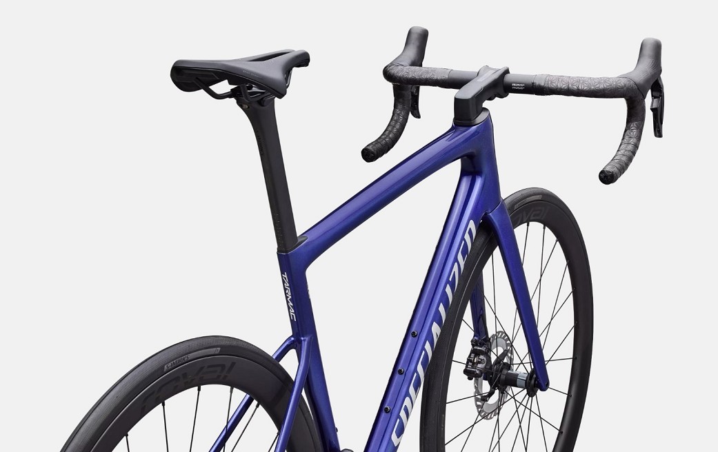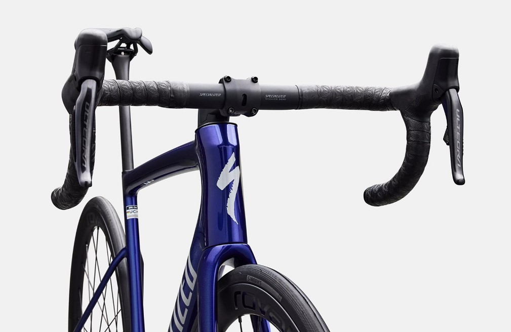 Tarmac SL8 Expert Di2 предлага изключителна производителност с групсет Ultegra Di2, карбонови капли Roval C38 и интегрирана лапа с кормило Specialized Expert Shallow Drop.