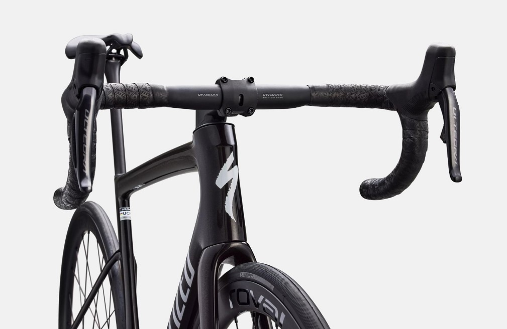 Tarmac SL8 Expert Di2 предлага изключителна производителност с групсет Ultegra Di2, карбонови капли Roval C38 и интегрирана лапа с кормило Specialized Expert Shallow Drop.