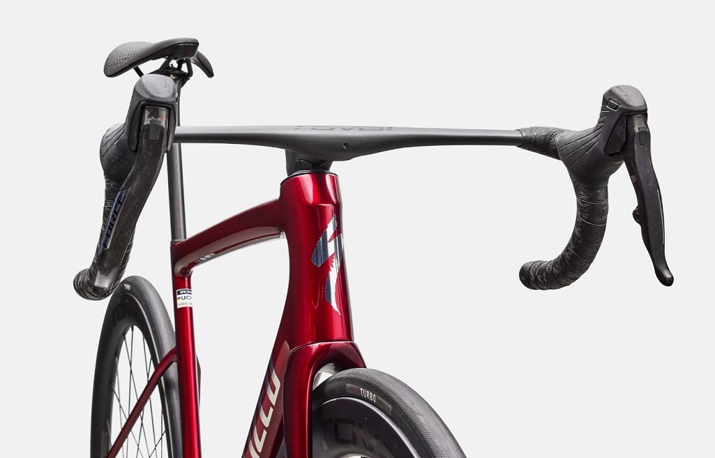 АЕРО ВЪВ ВСИЧКО: Аеродинамиката в Tarmac SL8 е вложена навсякъде - виждаме я дори в предния ръб на челната тръба. В процеса на това Specialized създават най-аеродинамичния ни шосеен велосипед досега. Да, той е по-аеродинамичен от Venge. Чистият въздух е оптимизиран за максимално предимство с новия Speed Sniffer. Предният ръб на челната тръба е много по-остър, осигурявайки много по-ниска форма на съпротивление. Освен това, използвайки новите правила на UCI, Tarmac SL8 има най-тясното и аеродинамично колче за седло, която някога производителите са правили, осигурявайки бързо движещият се, мръсен въздух около краката да може да се връща по-чисто.