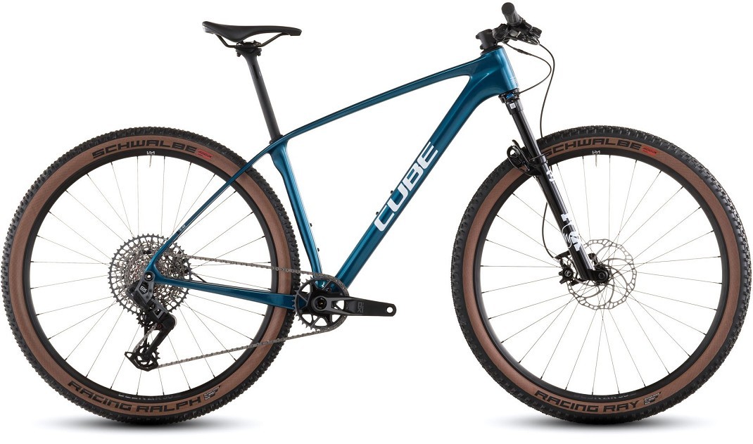Cube Reaction C:62 SLX  е състезателен карбонов хардтейл, който съчетава ултралек дизайн с високотехнологични компоненти, насочен към колоездачи, които търсят максимална ефективност по трасетата. Рамката е изградена от C:62® Monocoque карбон с технология Advanced Twin Mold. Окачването се състои от Fox 32 SC Float Performance с ход 100 мм и дистанционно заключване — решение, което поддържа велосипедa бърз и контролируем при променлив терен. Задвижването е 1×12 с електронно превключване SRAM GX Eagle AXS. Спирачната система включва Magura MT8 Pro хидравлични дискови спирачки с дискове 180 мм отпред и 160 мм отзад, предоставящи изключителна спирачна мощ. Каплите са Newmen Beskar 30 (Boost 15×110 / 12×148), tubeless-ready, с гуми Schwalbe Racing Ray / Racing Ralph 2,25″, за отличен баланс между сцепление и скорост.