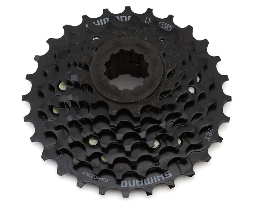 7-скоростната касета Shimano CS-HG210 е проектирана да осигурява надеждно и прецизно превключване на велосипеди, оборудвани със 7-скоростни задвижвания Shimano. Технологията HyperGlide кореспондира позитивно с веригата за плавно превключване, а всеки от стоманените зъби е обработен против ръжда, за да се гарантира, че касетата може да издържи дълго време, дори когато е изложена на неблагоприятни климатични условия.