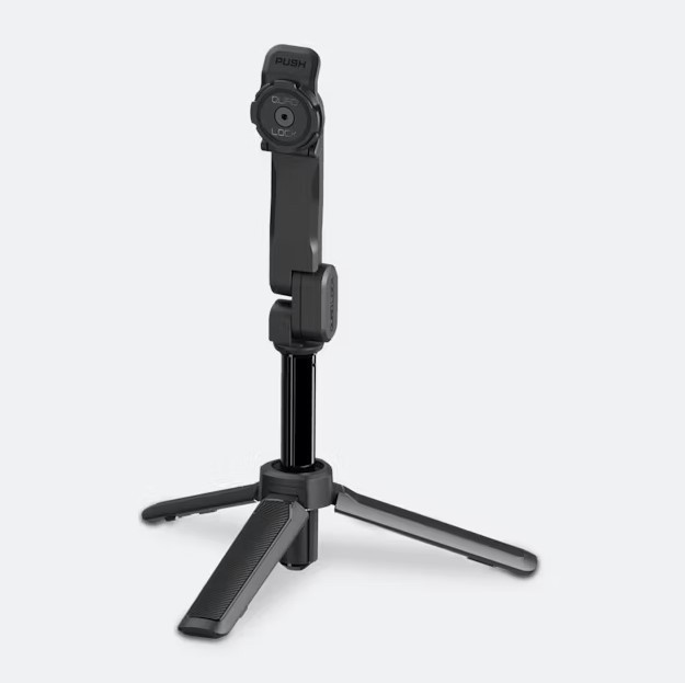 Стикът е с патентованото двустепенно заключване на Quad Lock, което ви позволява да се движите с увереност, знаейки, че вашият смартфон ще остане здраво закрепен. Просто завъртете и заключете, отделят се също толкова лесно, за да не пропуснете възможност за снимка или важен разговор. Lock Tripod се отличава с по-нисък профил и супер твърдо рамо за монтаж от анодизиран алуминий.