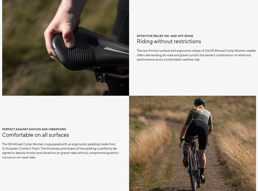 - Нискотриещата повърхност и ергономичната форма на SR Allroad Women предлагат на взискателните дами перфектната комбинация от облекчение и производителност, както и комфортно и безгрижно каране.