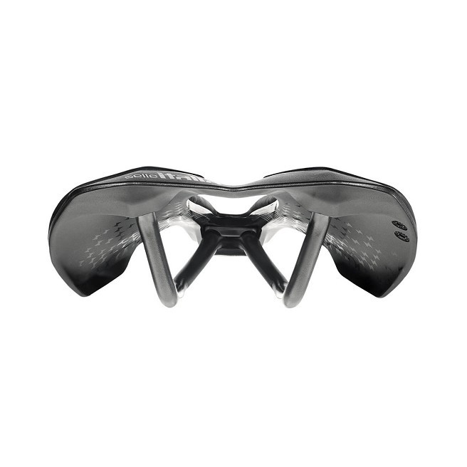 - Седалка с неутрална форма (анатомична), осигуряваща подходяща опора както за колоездачи с предна ротация на таза (динамични колоездачи), така и за тези със задна ротация (статични колоездачи).