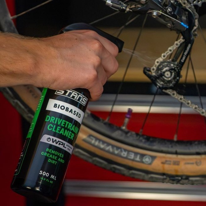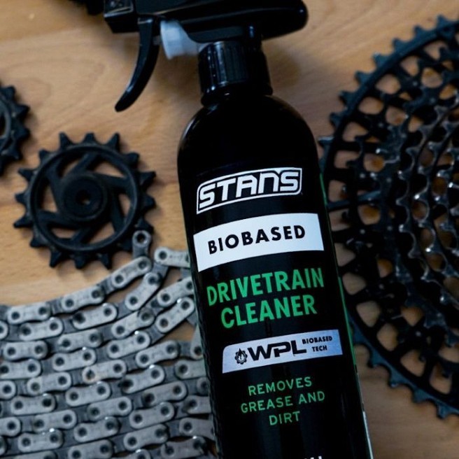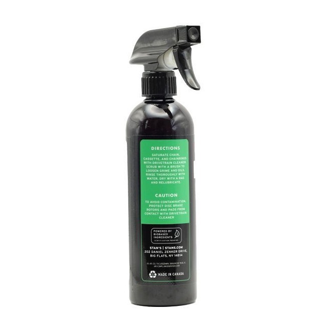 Stan’s Drivetrain Cleaner е мощно и устойчиво решение, което премахва замърсяванията и мръсотията по веригата, касетата, плочите и ролките на дерайльорите. Освен че осигурява блестящи компоненти, нетоксичната формула без петролни продукти е щадяща околната среда и безопасна за вас. Stan’s Drivetrain Cleaner също така е безопасен за всички материали, включително карбон, титан, алуминий, стомана, хром, гума и пластмаса.