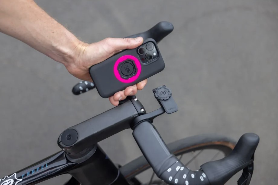 Стойката е с патентованото двустепенно заключване, което ви позволява да карате с увереност, знаейки, че вашият смартфон ще остане здраво закрепен на колелото ви, независимо от терена. Просто завъртете и заключете, за да виждате приложения, докато карате, като например Strava®, MapMyRide или Apple® карти. Телефонът се отделя толкова лесно, за да не пропуснете възможност за снимка или важен разговор. Монтажът е проектиран за аеродинамика. Out Front Mount PRO се отличава с по-нисък профил и супер твърдо рамо за монтаж от анодизиран алуминий.