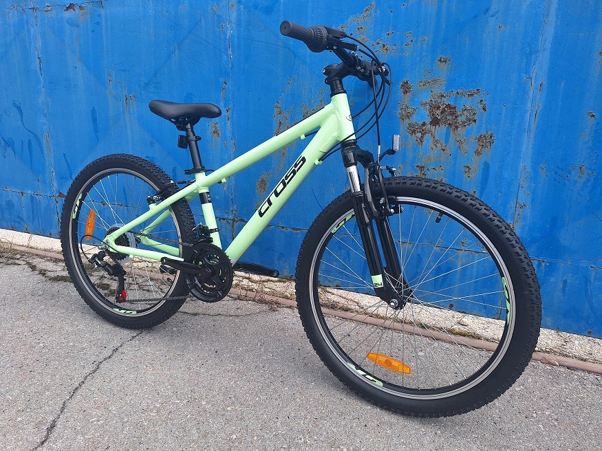CROSS STELA 24″ е модерно разработен велосипед, предназначен за деца и тийнейджъри, които искат да започнат своите приключения както в града, така и извън него. Стабилната алуминеива рамкa осигурява оптимална комбинация от здравина и ниско тегло, което улеснява управлението и прави карането по-комфортно за младите колоездачи. CROSS STELA впечатлява с амортисьорна вилка, която омекотява неравностите и осигурява по-плавно движение по различни терени. Комбинацията от надеждни компоненти на Shimano и качествени капли с гуми Rubena гарантират добро сцепление и контрол при маневриране. Велосипедът се предлага в стилен зелен цвят, който допълва ергономичния спортен вид.