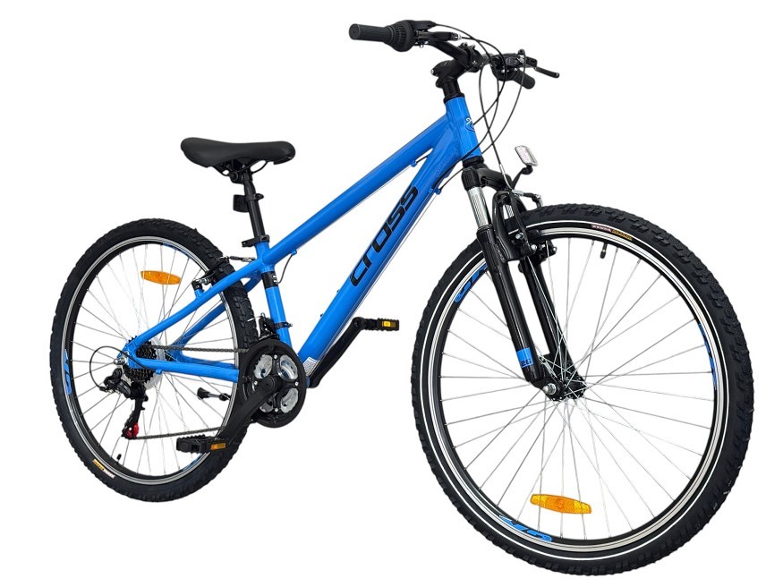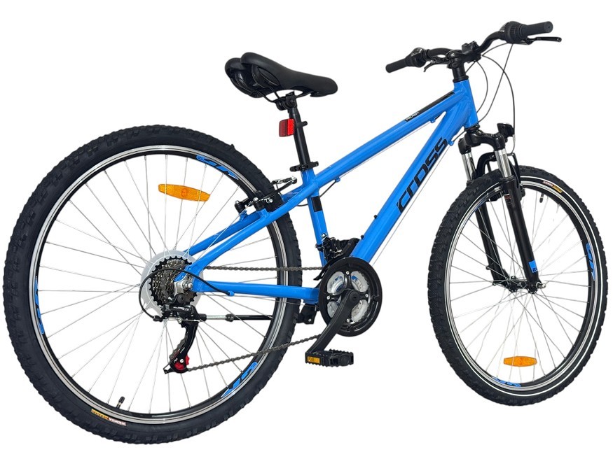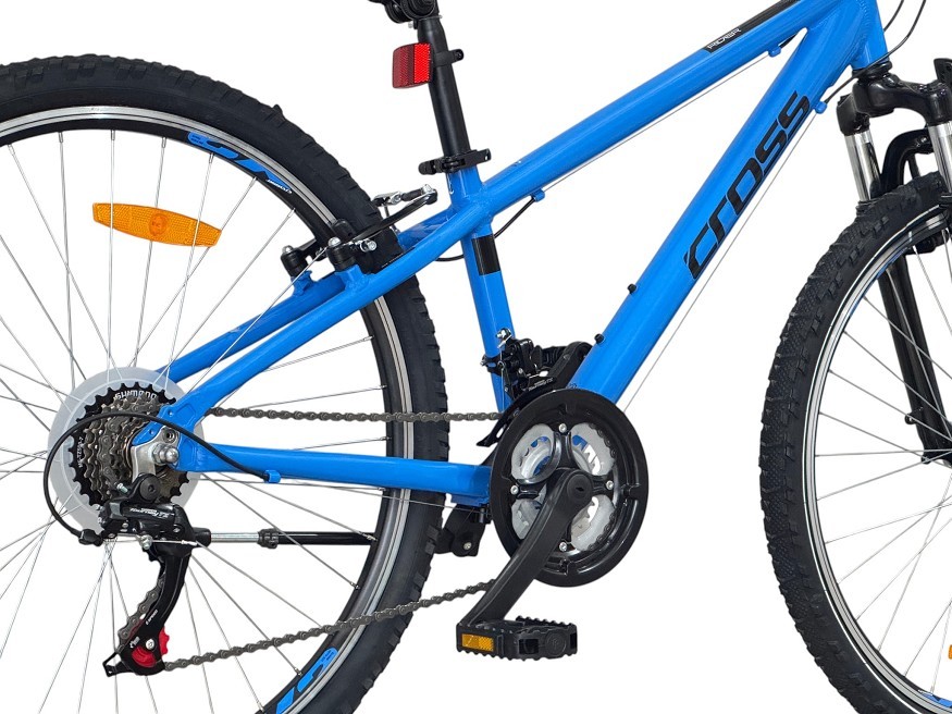 CROSS RIDER 26″ е модерно разработен велосипед, предназначен за тийнейджъри, които искат да започнат своите приключения както в града, така и извън него. Стабилната алуминеива рамкa осигурява оптимална комбинация от здравина и ниско тегло, което улеснява управлението и прави карането по-комфортно за младите колоездачи. CROSS RIDER впечатлява с амортисьорна вилка, която омекотява неравностите и осигурява по-плавно движение по различни терени. Комбинацията от надеждни компоненти на Shimano и качествени капли с гуми Rubena гарантират добро сцепление и контрол при маневриране. Велосипедът се предлага в стилен син цвят, който допълва ергономичния спортен вид.