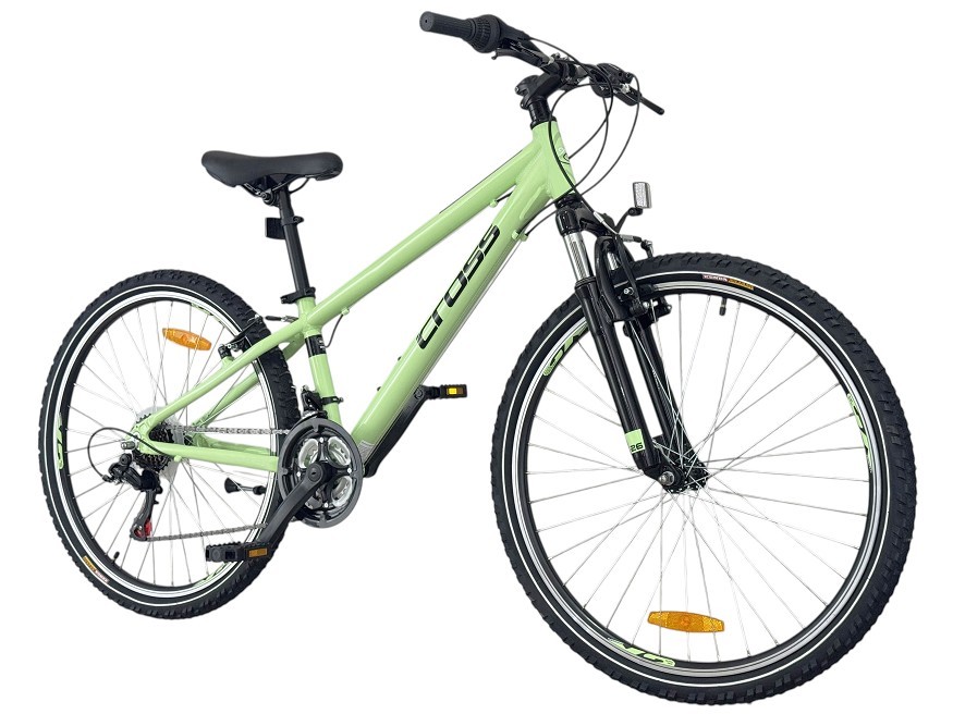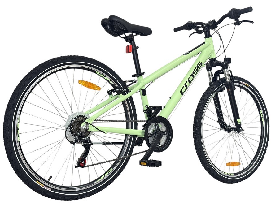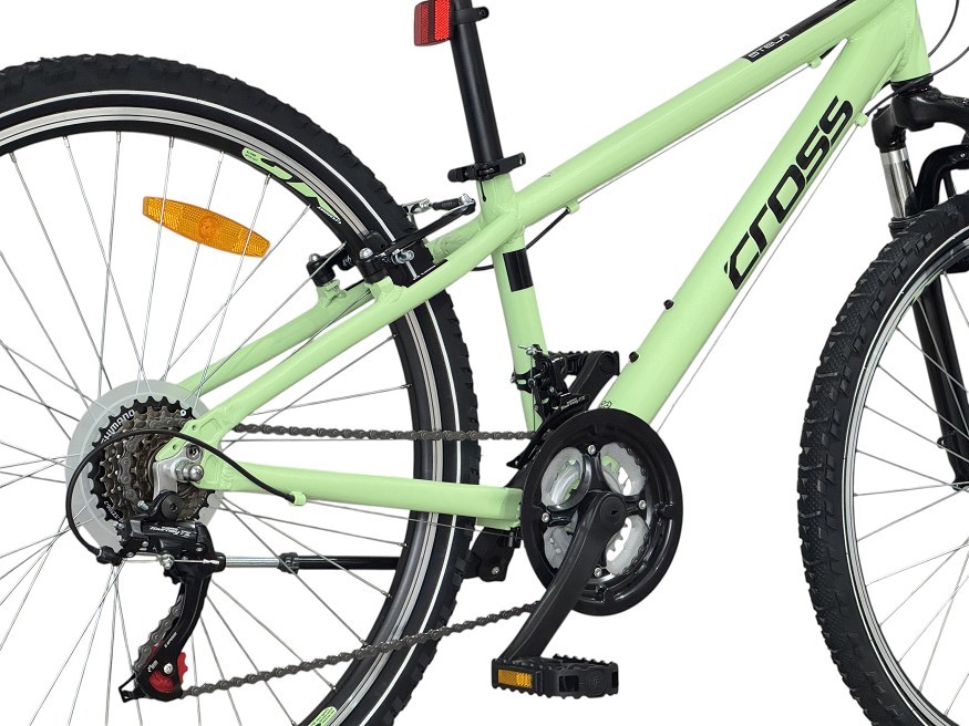 CROSS STELA 26″ е модерно разработен велосипед, предназначен за тийнейджъри, които искат да започнат своите приключения както в града, така и извън него. Стабилната алуминеива рамкa осигурява оптимална комбинация от здравина и ниско тегло, което улеснява управлението и прави карането по-комфортно за младите колоездачи. CROSS STELA впечатлява с амортисьорна вилка, която омекотява неравностите и осигурява по-плавно движение по различни терени. Комбинацията от надеждни компоненти на Shimano и качествени капли с гуми Rubena гарантират добро сцепление и контрол при маневриране. Велосипедът се предлага в стилен зелен цвят, който допълва ергономичния спортен вид.